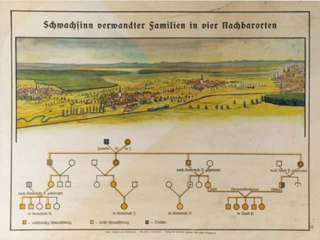A Nazi eugenics poster, entitled "Feeble-Mindedness in Related Families in Four Neighbouring Towns".