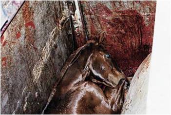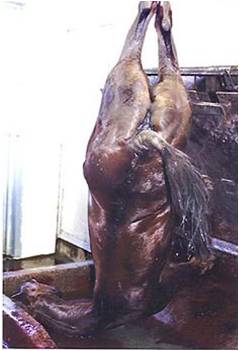 This slaughtered horse will be sent to a rendering plant and taken apart for various uses.