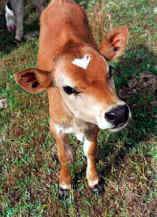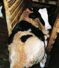 A calf imprisoned for "veal"; this point of parallel comparable to "Baby Butchers" slide in PETA's Holocaust on Your Plate exhibit (see under Further Resources below).
