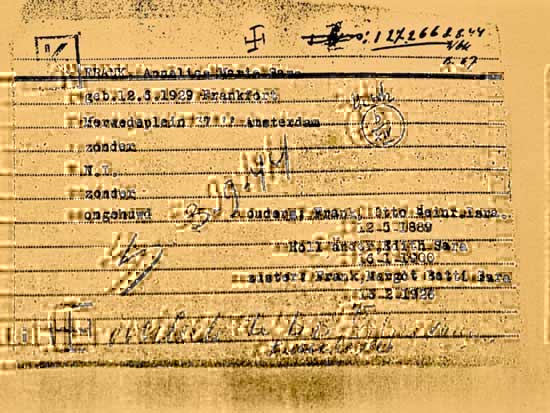 Anne Frank's transport papers; she of course is the author of the world-famous Diary of a Young Girl.