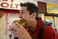 An ordinary fellow eating a burger, with little or no thought given to the agonies and obliterated lives connected to his actions.