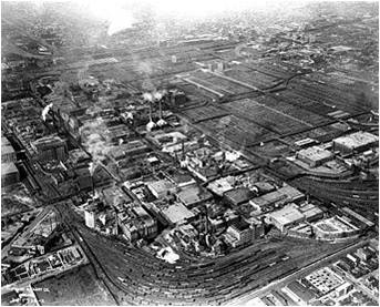 Aerial view of the Union Stockyards, Chicago, 1924.