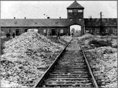 Pictured here is the sinister gate to Auschwitz; the translation from the German above it is, "Work Will Make You Free".