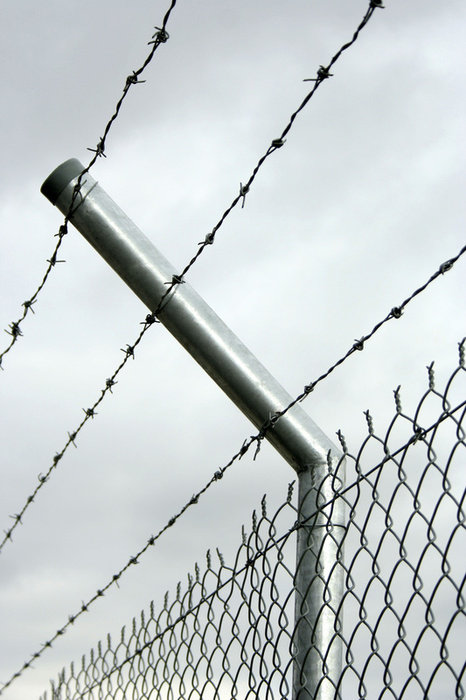 Modern security fencing around slaughterhouse and vivisection laboratories (the contemporary fences often have security cameras as well).